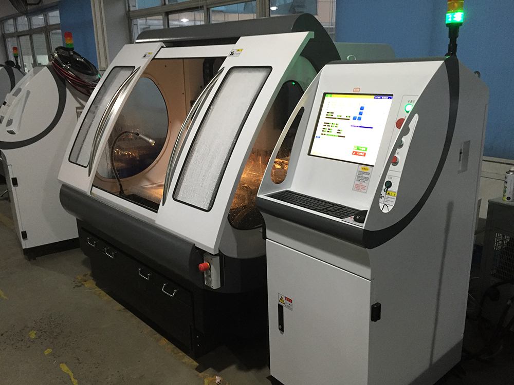 あらゆる板ガラスの形状、Rコーナー、オリフラをデータ入力し端面を処理する加工機です。